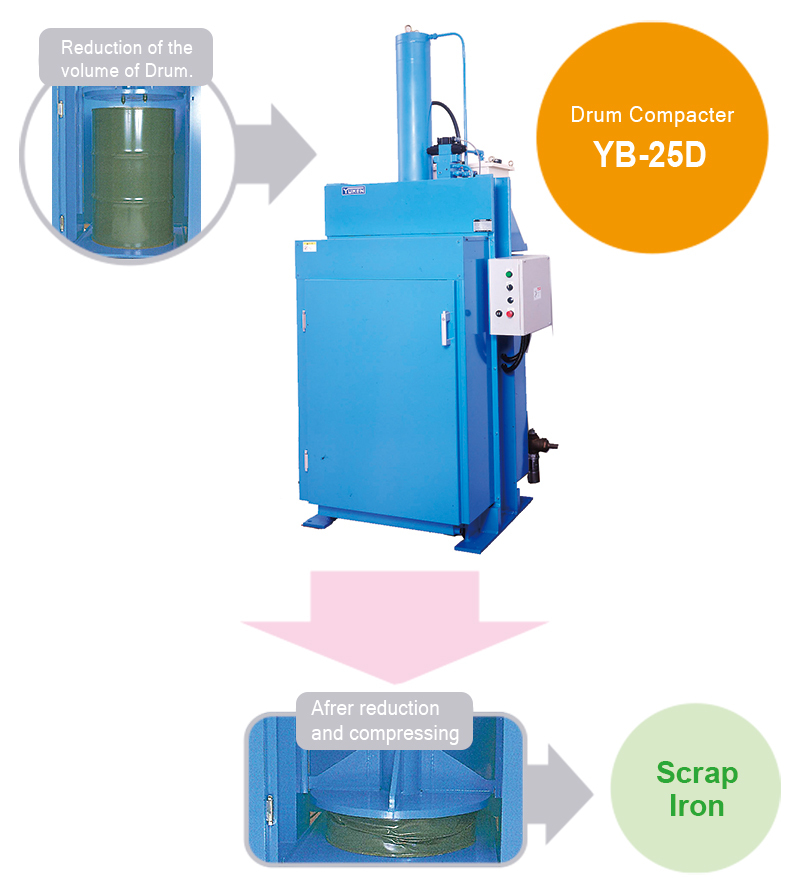 The Yuken Drum Compactor is the ideal solution for cost-effective disposal/recycling of large quantities of waste metal drums.