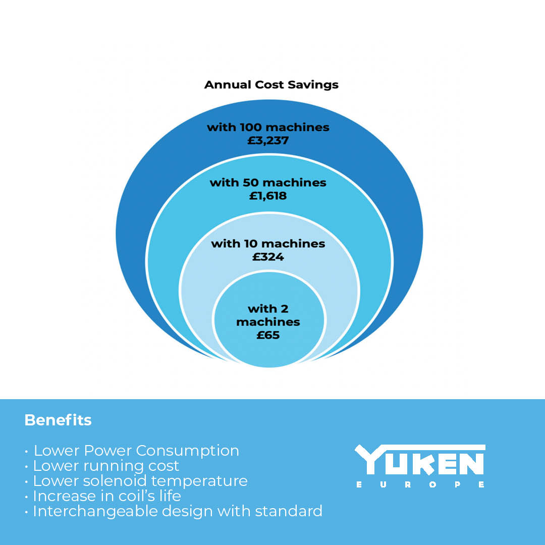 Benefits to the Energy Saving Diode include lower power consumption and running costs, a lower solenoid temperature which increases the coil’s life. The interchangeable design is standard and comes with connectors for easy replacement.